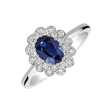 Jemnosť a elegancia sú kombinované v tomto prsteni vyrobenom zo 14kt bieleho zlata s diamantmi a zafírom. Jeho jemný dizajn je dokonalým doplnkom pre každú dôležitú príležitosť, dodáva šmrnc a zároveň zdôrazňuje jemnú krásu nositeľa. Šperk je súčasťou kolekcie Diana.