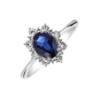 Exkluzívny prsteň vyrobený zo 14kt bieleho zlata s diamantmi a zafírom - pre tých, ktorí si chcú dopriať skutočný šperk plný majestátnosti. Šperk je súčasťou kolekcie Diana.