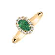 14kt žltý zlatý prsteň s diamantmi a smaragdom je ako poklad strateného kráľovstva. Jeho trblietavé diamanty a vzácny smaragd symbolizujú luxus, silu a lákavú krásu. Šperk je súčasťou kolekcie Diana.