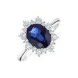 14kt prsteň z bieleho zlata s diamantmi a zafírom je vyjadrením romantiky aj sily. Tento prsteň kombinuje krásu diamantov s intenzitou zafíru a vytvára prázdnu bridlicu pre nekonečný príbeh lásky a záväzku. Šperk je súčasťou kolekcie Diana.