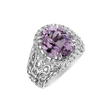 Jemnosť a elegancia sú kombinované v tomto prsteni vyrobenom z 18kt bieleho zlata s diamantmi a kunzitom. Jeho jemný dizajn je dokonalým doplnkom pre každú dôležitú príležitosť, dodáva šmrnc a zároveň zdôrazňuje jemnú krásu nositeľa. Šperk je súčasťou kolekcie Fantasy.